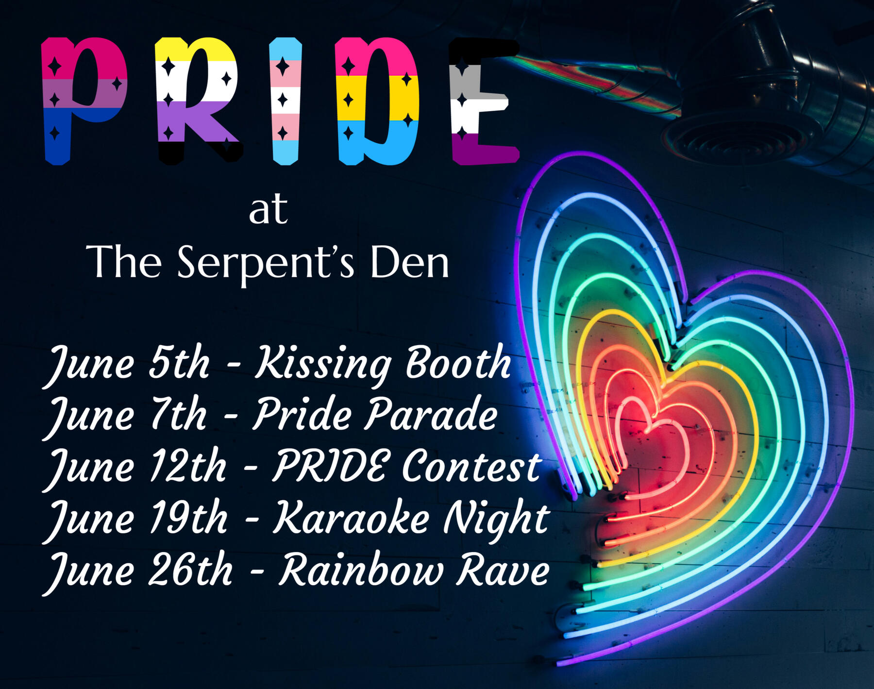 This year, The Serpent's Den has something going on every week for Pride!We're excited to be able to show our support for the LGBTQIA+ community.